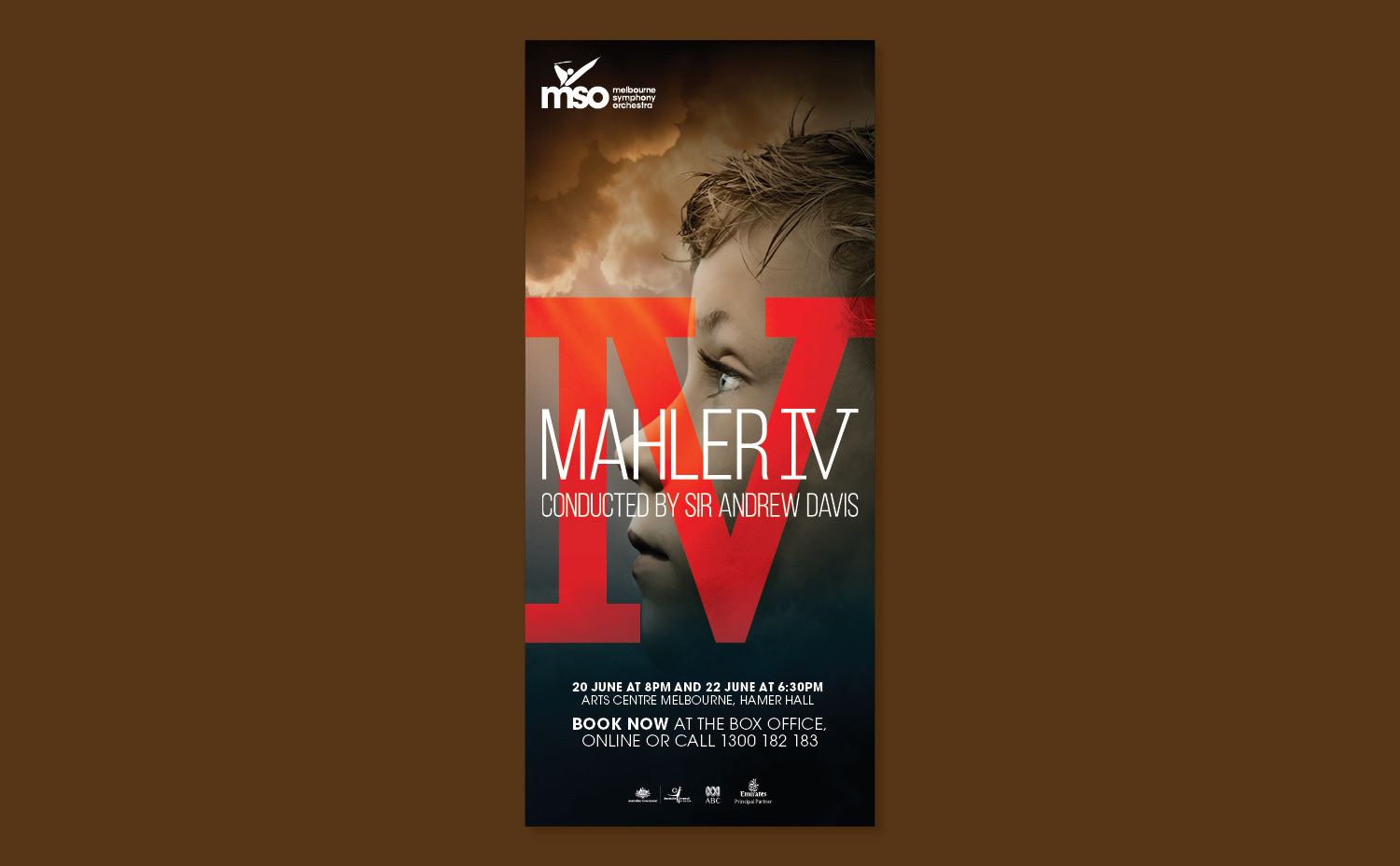 Mahler Symphony No. 4. Poster and digital outputs for Melbourne Symphony Orchestra. An intimate description of heaven through the innocent eyes of a child. Concept, design and art direction.